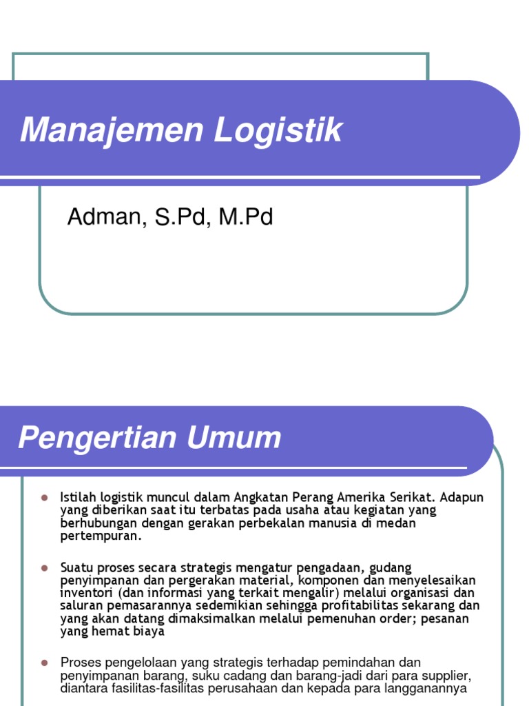 Manajemen logistik adalah suatu ilmu pengetahuan dan atau seni serta proses mengenai perencanaan dan penentuan kebutuhan pengadaan penyimpanan penyaluran dan. Menurut pendapat Lukas Dwiantara dan Rumsari Hadi pengertian Manajemen Logistik adalah serangkaian kegiatan perencanaan pengorganisasian dan pengawasan terhadap. Siahaya mendefinisikan Manajemen Logistik sebagai berikut.